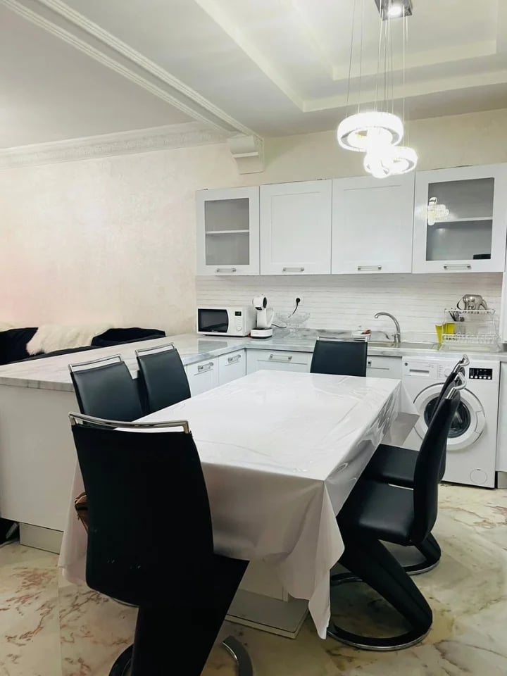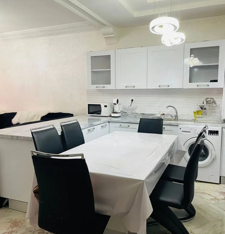 L’appartement dispose de 2 chambres entièrement équipées avec climatisation et placards. Le salon est spacieux et équipé d’une télévision pour vos moments de détente. La cuisine aménagée comprend tous les appareils fonctionnels nécessaires, y compris un lave-linge, un réfrigérateur, un four et une table à manger. La salle de bain est équipée d’une douche et de toilettes.
