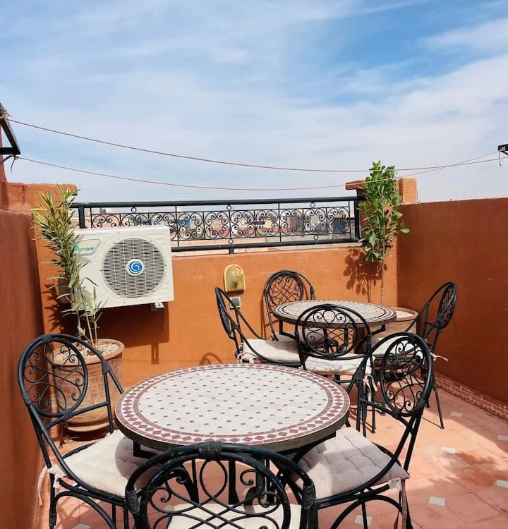 Réservez dès maintenant avec MS Holidays pour profiter de ce charmant riad avec terrasse, à proximité de la place Jemma El Fna.
